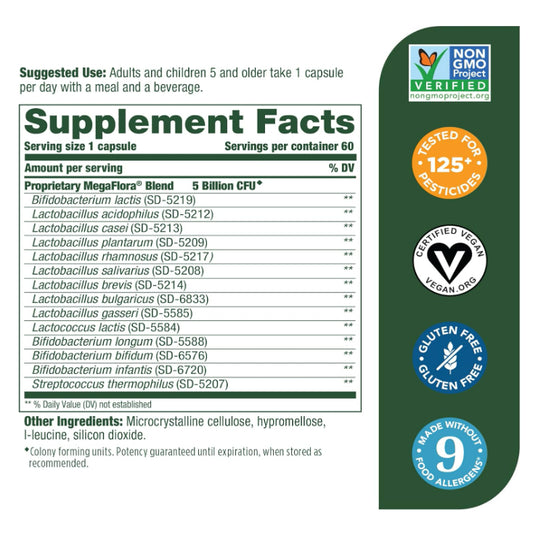 LowCost PH| MegaFood, Kids Probiotic, MegaFlora, 5 Billion CFU, 60 Capsules
