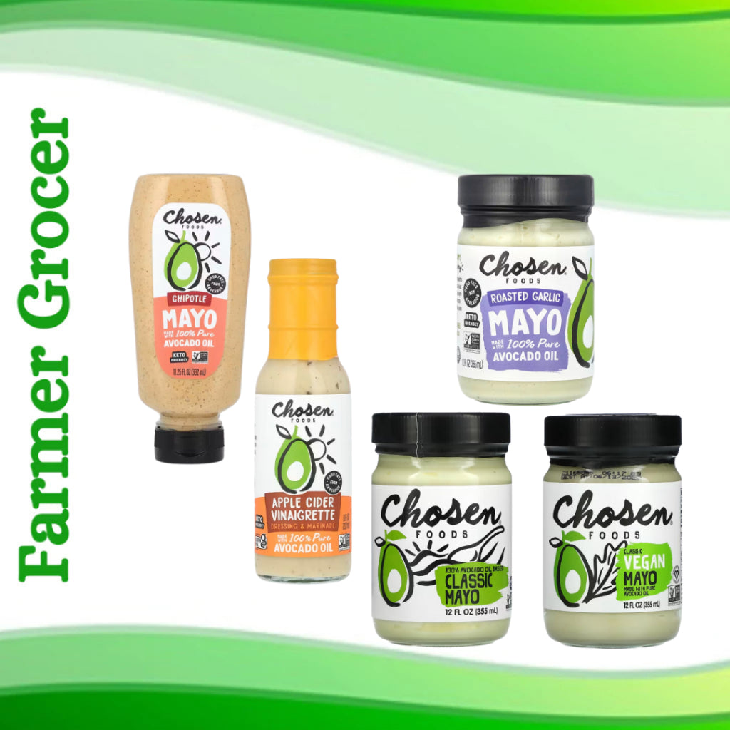 Grocer Farmer | Chosen Foods, 100% Avocado Oil Based, Classic Mayo, Vegan, Garlic, Chipotle, Apple