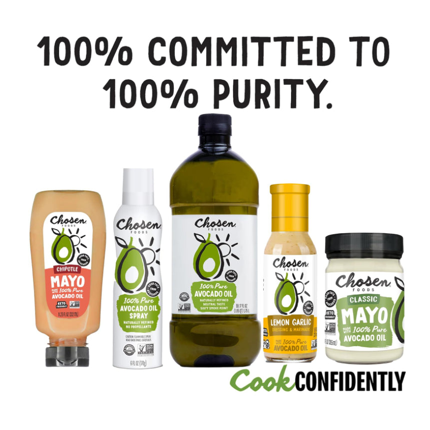 Blend of Oils: Combines avocado oil and extra virgin olive oil for a rich flavor and versatile cooking options.