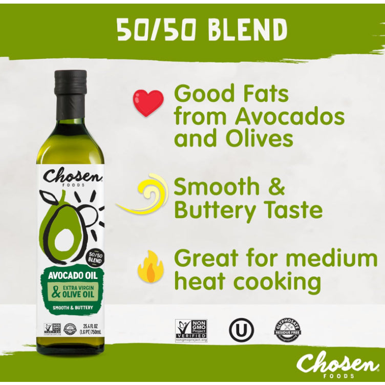 1. Chosen Foods, Avocado Oil & Extra Virgin Olive Oil (25.4 fl oz)