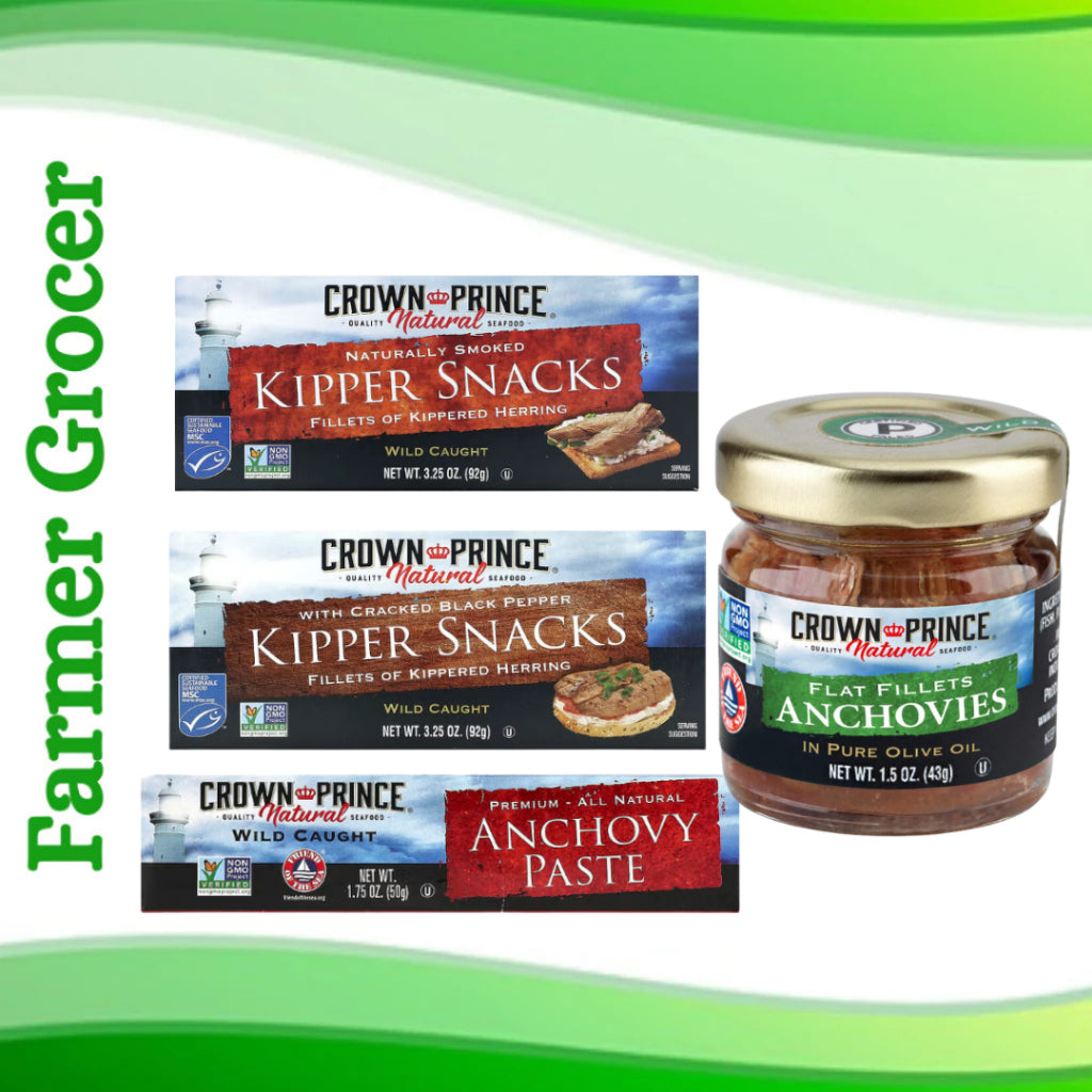 GrocerFarmer | Crown Prince Natural, Anchovy Paste, Kipper Snacks, Flat Anchovies In Pure Olive,