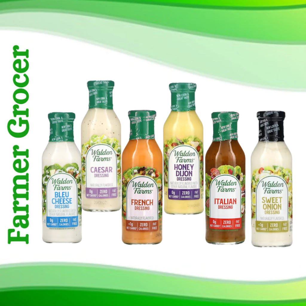 GrocerFarmer| Walden Farms Asian, Bleu Cheese, Caesar Honey, Italian, Onion Thousand Island Dressing