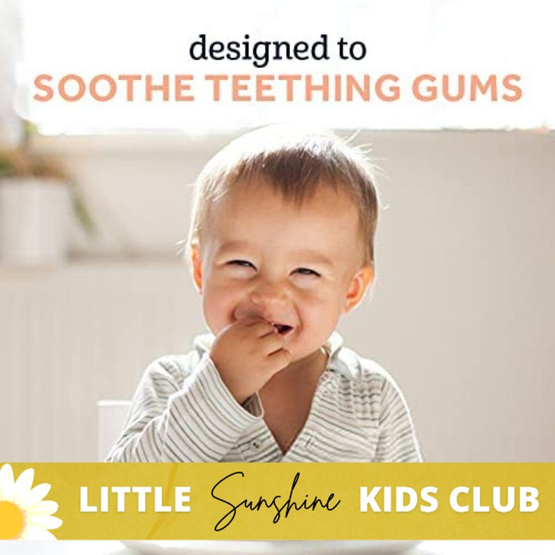 1. **Soothing Relief**: The texture and shape of the teething wafers are specifically designed to provide gentle relief to infants who are experiencing discomfort due to teething. The wafers can help massage and soothe sore gums, providing temporary relief from teething pain.