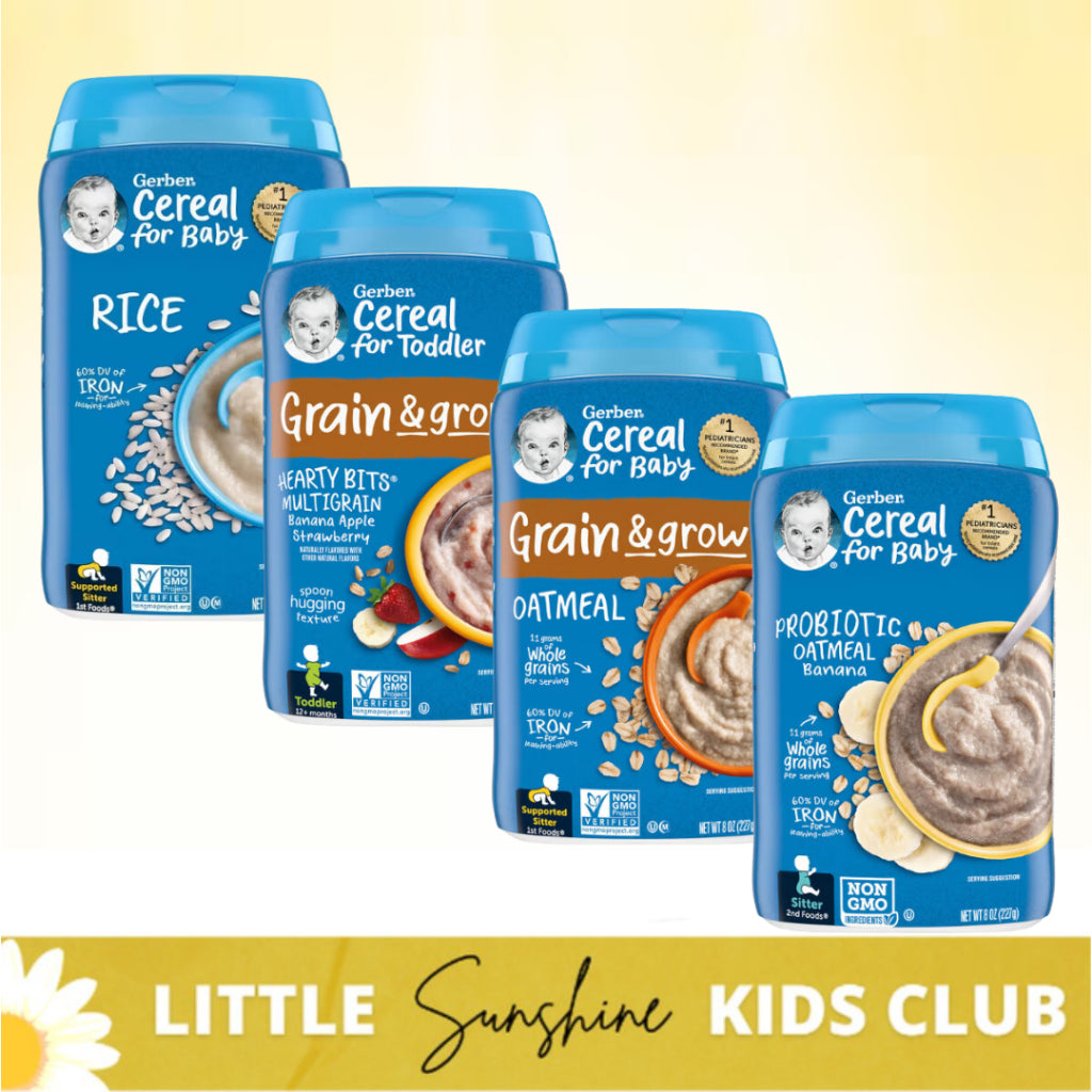 Little Sunshine | Gerbers, Oatmeal, Rice, Lil Bits, Hearty Bits, Probiotic Banana, Multigrain Cereal