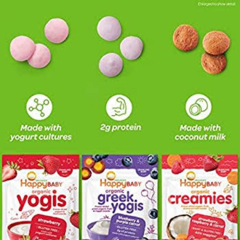 Happy Family Organics' Organic Greek Yogis in Strawberry Banana flavor are a delicious and nutritious snack option for babies and toddlers. These yogurt snacks are made with high-quality organic ingredients, including real fruit purees and probiotic-rich Greek yogurt.