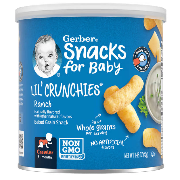 Texture Introduction: The texture of the Lil' Crunchies snack helps babies explore different textures, aiding in their oral motor development and preparing them for more solid foods.
