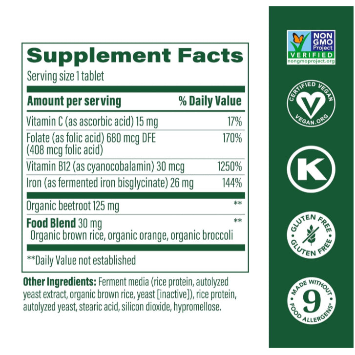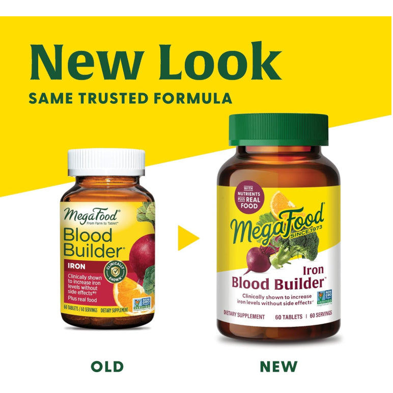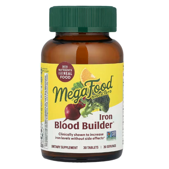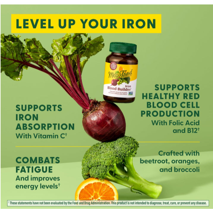 MegaFood Blood Builder is clinically shown to increase iron levels without nausea or constipation.* We add whole foods like beets and oranges, with key nutrients like folate, iron and B12, that help to improve energy levels and combat fatigue. Vitamin C is included to support iron absorption.