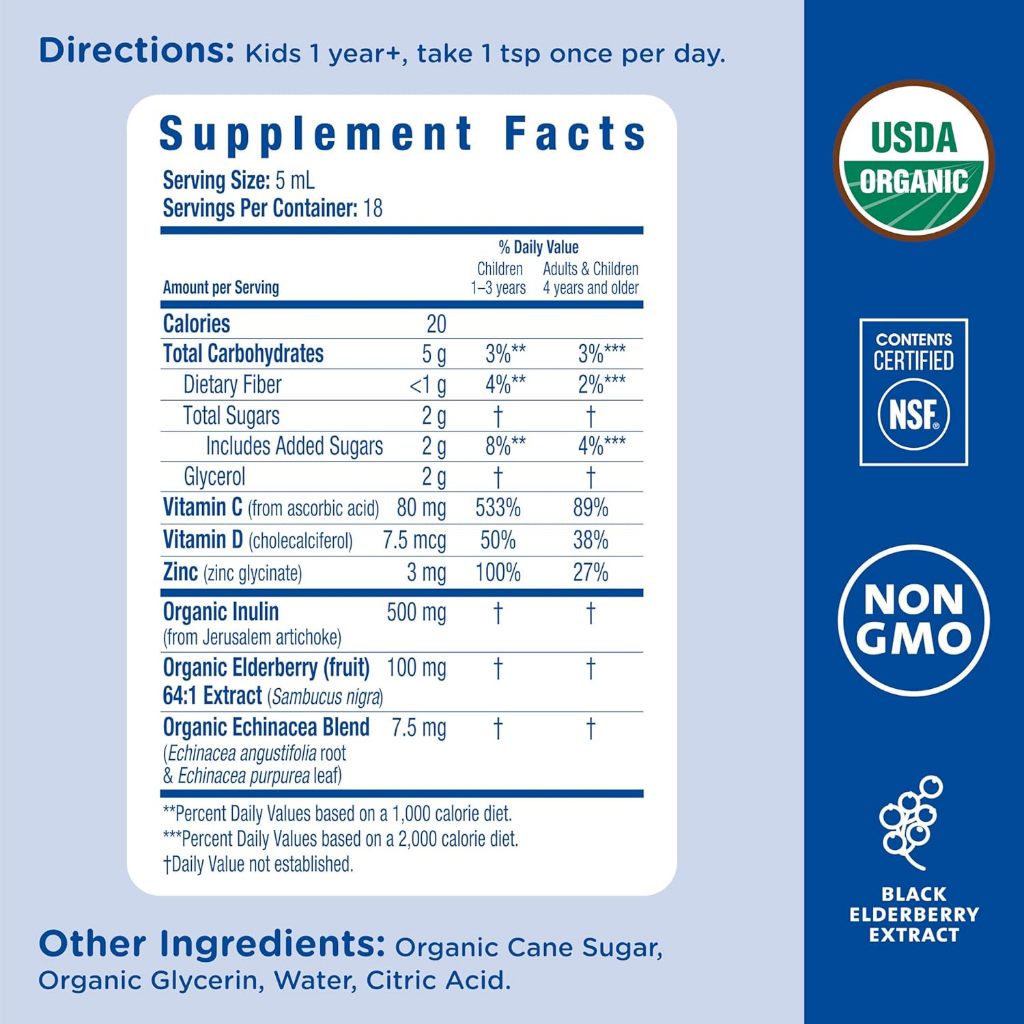 Organic Kids Immunity Syrup with Elderberry is a great-tasting herbal supplement used to support healthy immune function.