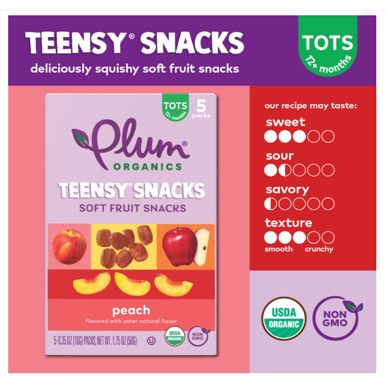 Plum Organics, Teensy Soft Fruits Snacks, 12+ Months, Peach, 5 Packs, 0.35 oz (10 g) Each