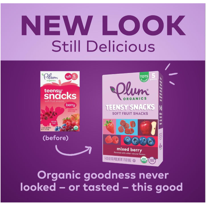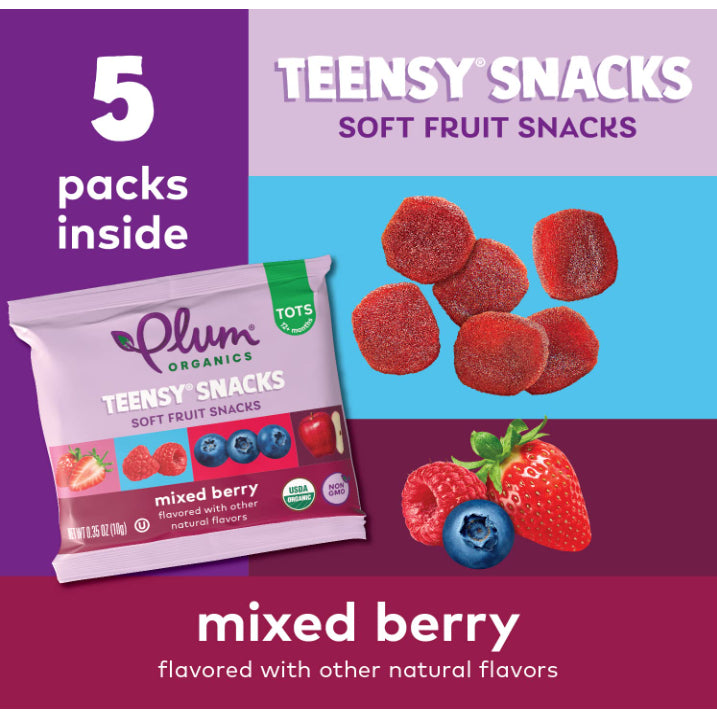 Plum Organics, Teensy Snacks, Soft Fruit Snacks, Tots 12+ Months, Mixed Berry, 5 Packs, 0.35 oz (10 g) Each