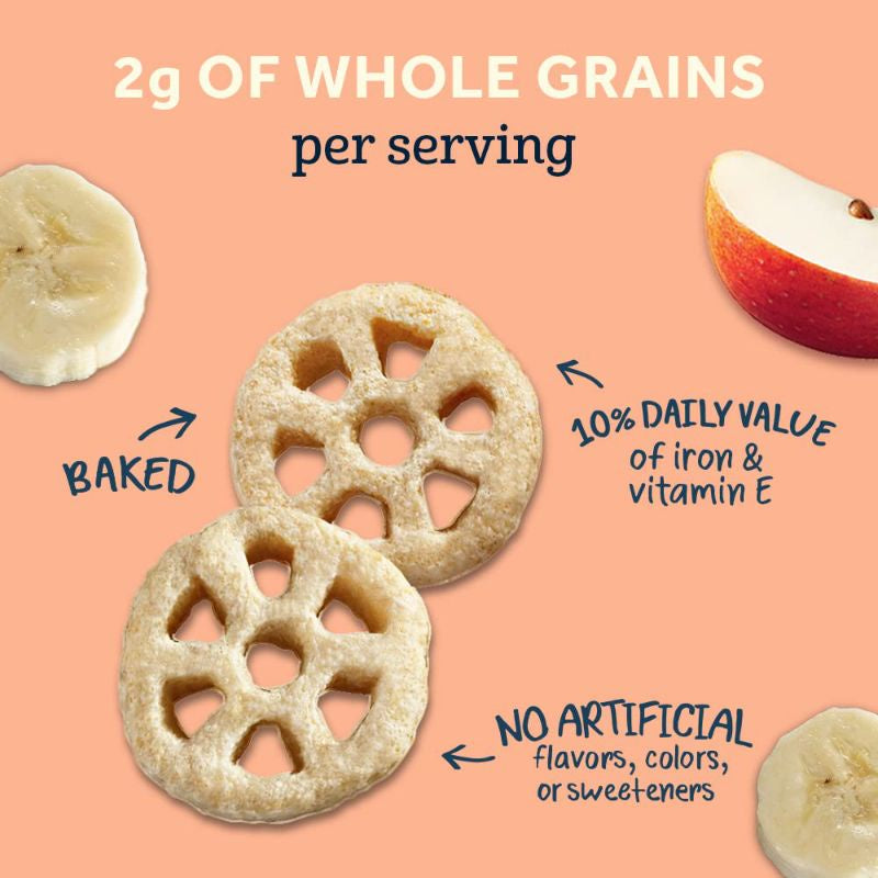 Whole grain sorghum flour, rice flour, cane sugar, dried apple puree, sunflower lecithin, natural apple flavor, mixed tocopherols (to maintain freshness), vitamins and minerals: iron (electrolytic), vitamin E (alpha tocopheryl acetate).