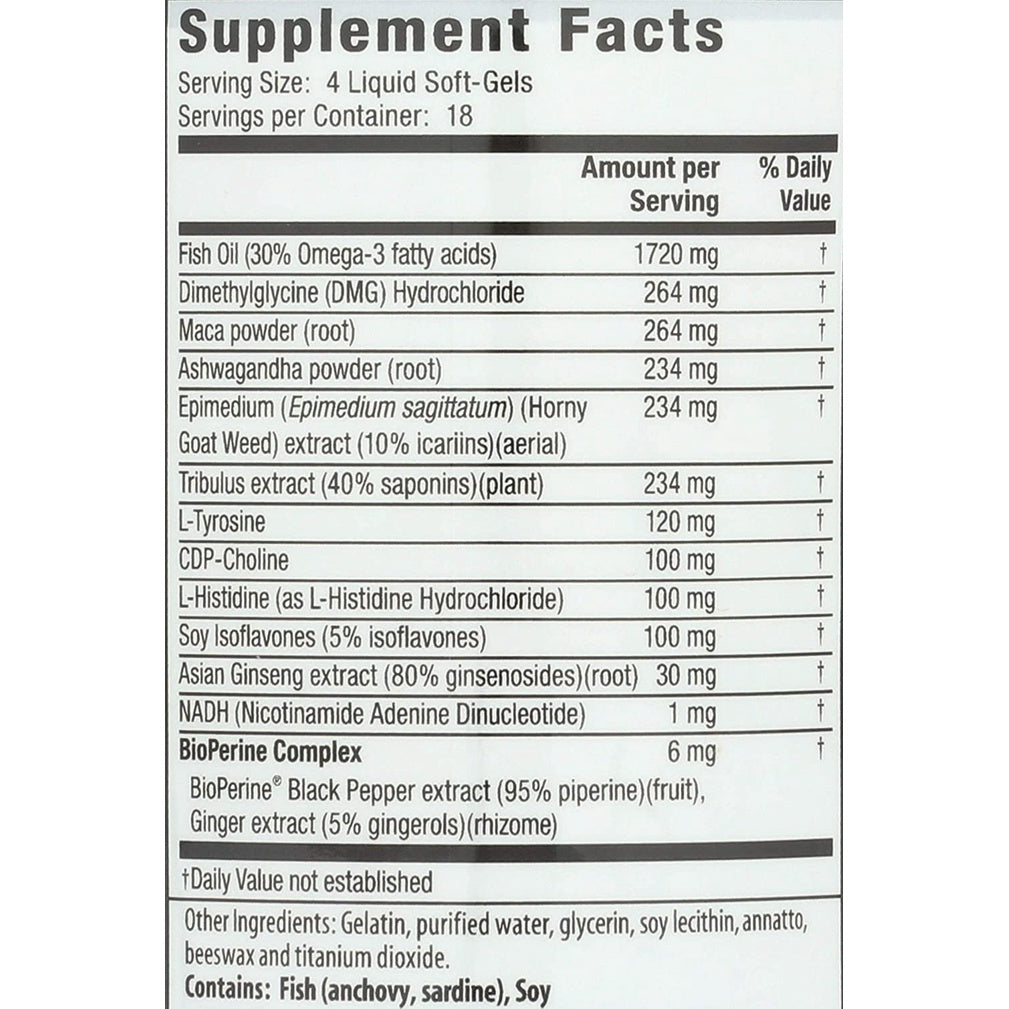 (Adult) For daily maintenance, take four (4) liquid Soft-Gels in divided doses. For more immediate response prior to intimacy, take four (4) Liquid Soft-Gels one hour before activity. Do not take more than four (4) Liquid Soft-Gels in one day.