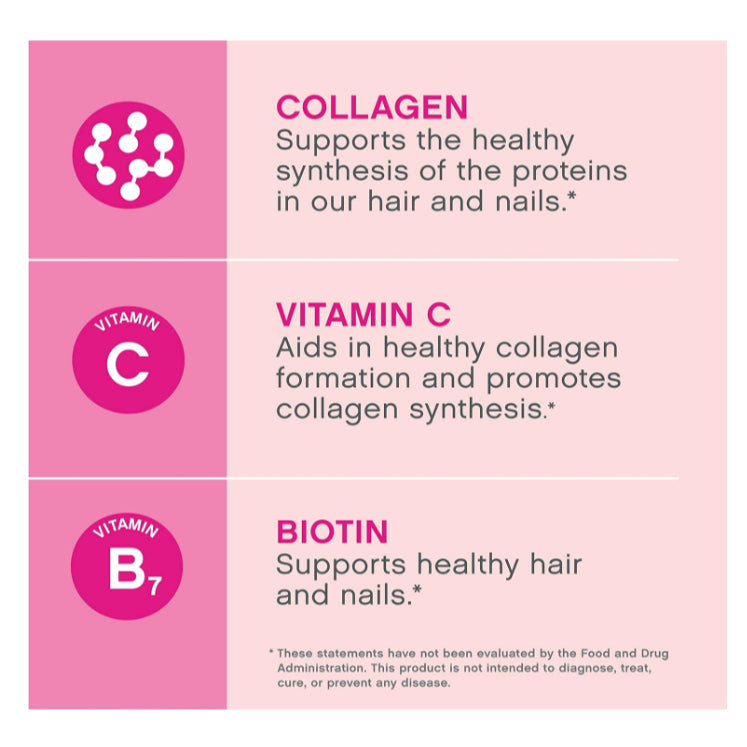 Triple Action Formula: The combination of collagen, vitamin C, and biotin provides comprehensive support for skin, hair, nails, and joints.