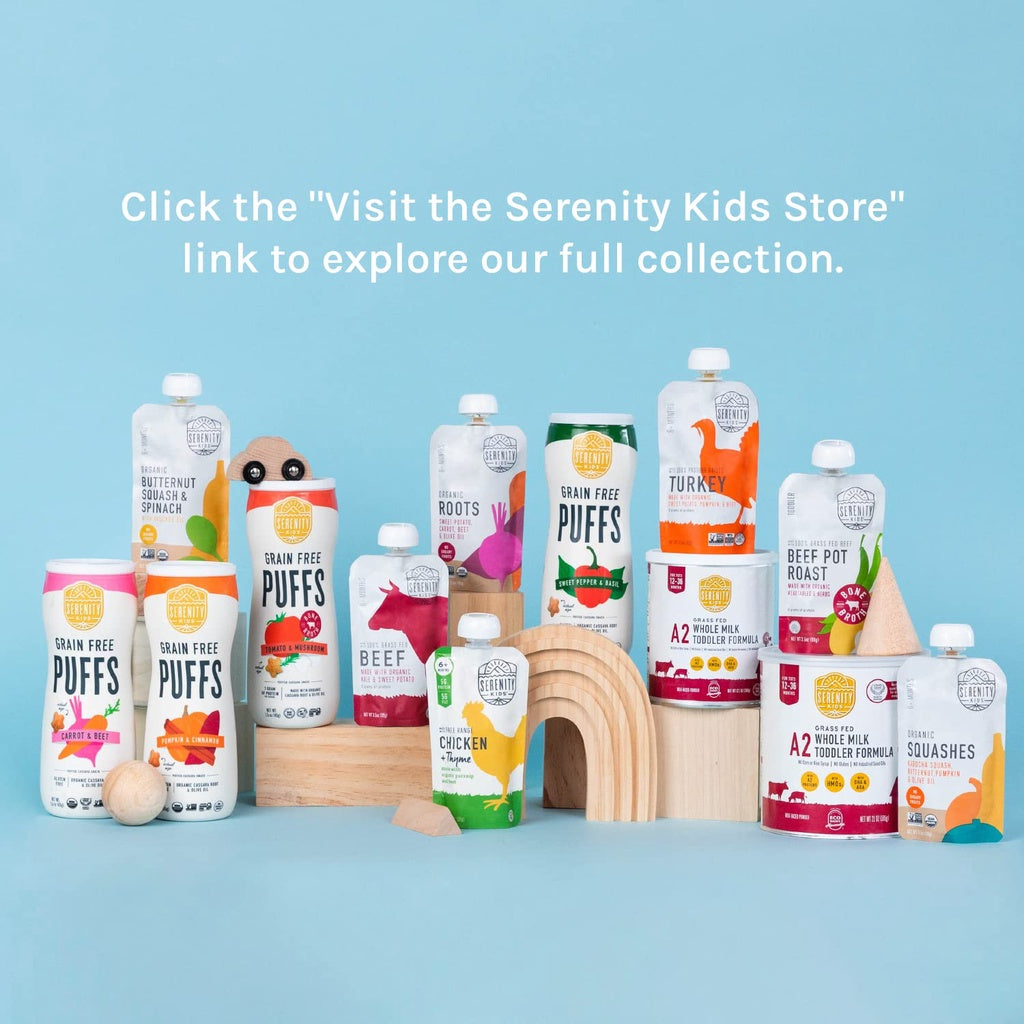 Hi, I'm Serenity! My husband and I started Serenity Kids for our baby Della. We dramatically improved our health through a diet of ethical meats and vegetables. We are on a mission to improve children's diets by offering nutrient dense foods that taste great and are convenient for parents. We focus on using whole food ingredients grown on family farms that practice regenerative agriculture, for our baby and for yours.