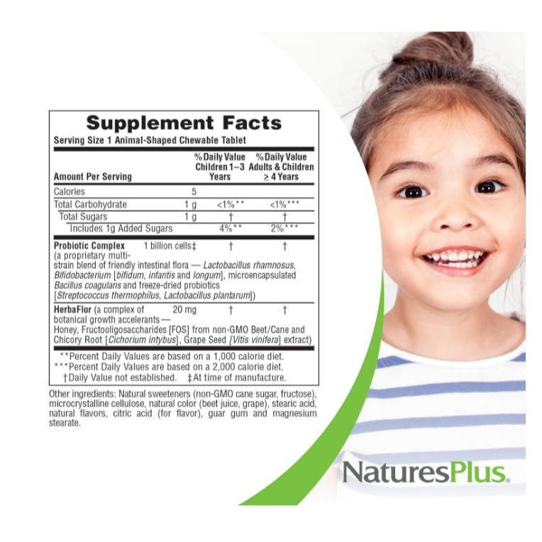 Just like AcidophiKidz, Tummy Zymes also come in berry-flavored, animal-shaped chewable tablets that are enjoyable for children to take.