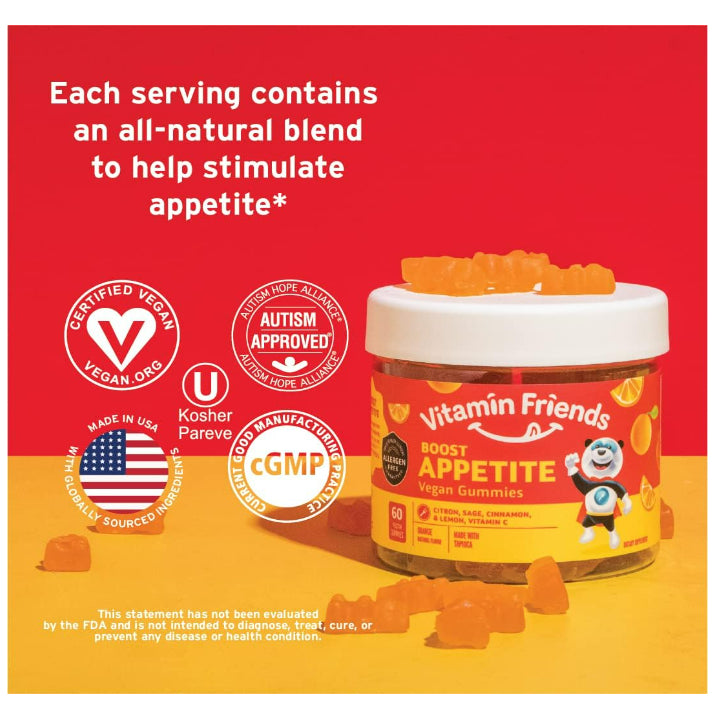Low Cost PH | Vitamin Friends, Boost Appetite Vegan Gummies, Orange, 60 Pectin Gummies