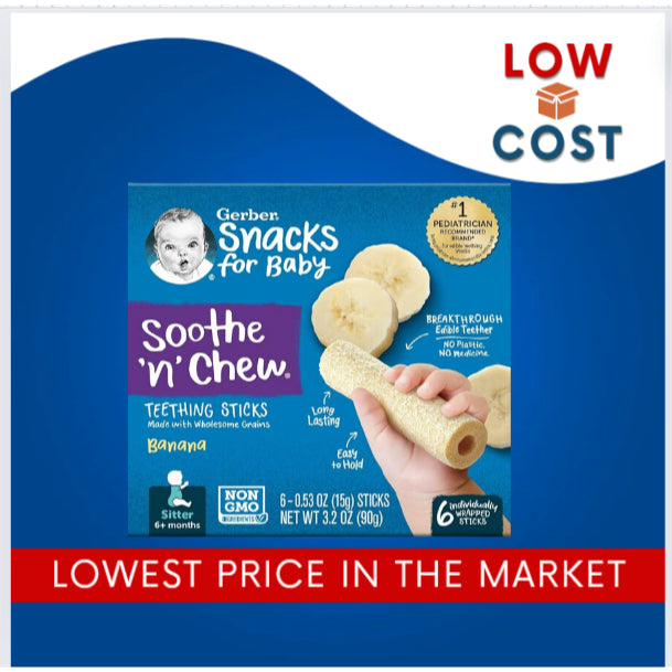LowCost Gerber Snacks for Baby, Soothe 'N' Chew, Teething Sticks, 6+ Months, Banana, 6 Wrapped Stick
