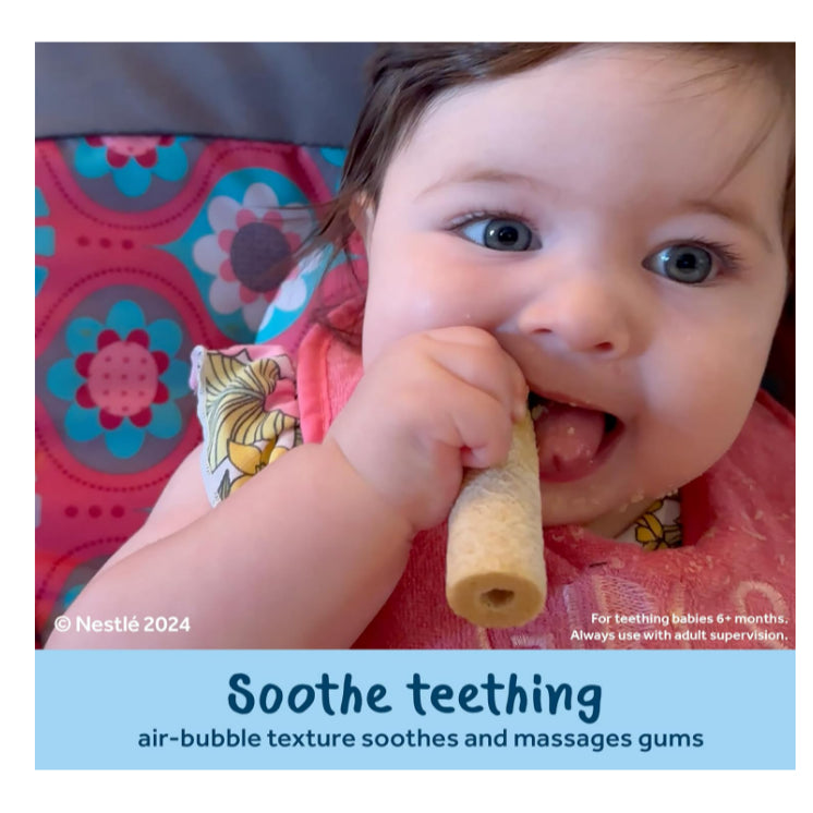2. If new to Soothe 'n' Chewâ„¢, Teething Sticks help your little one hold the stick as she chews.