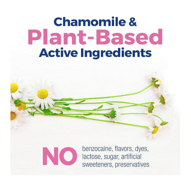 Temporarily relieves symptoms of teething, including painful gums and irritability