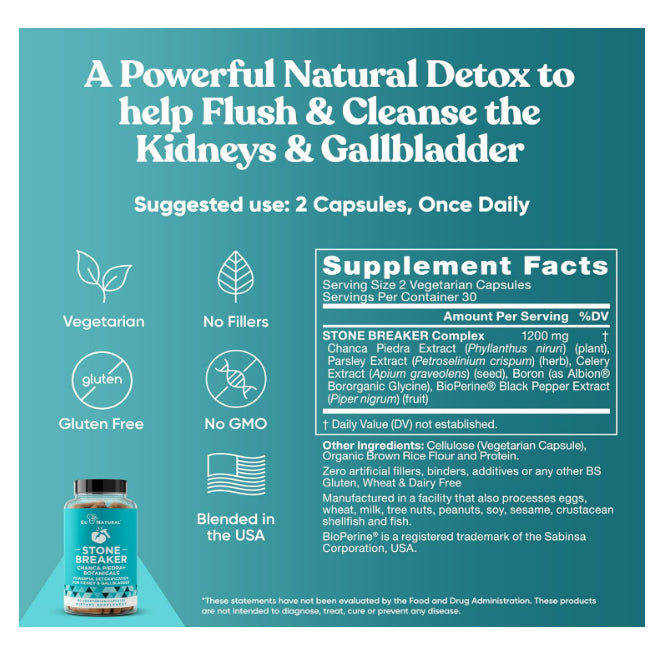 Stone Breaker is designed to support the kidneys and gallbladder by helping to dissolve kidney stones and gallstones, facilitating their natural removal from the body. This can alleviate discomfort and prevent the formation of new stones.
