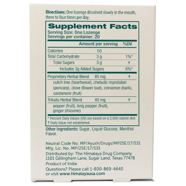 Himalaya Koflet Lozenges use traditional Ayurvedic ingredients, which have been used for centuries to address respiratory issues. Ingredients like licorice root are known for their anti-inflammatory and soothing properties, which help reduce inflammation in the throat.