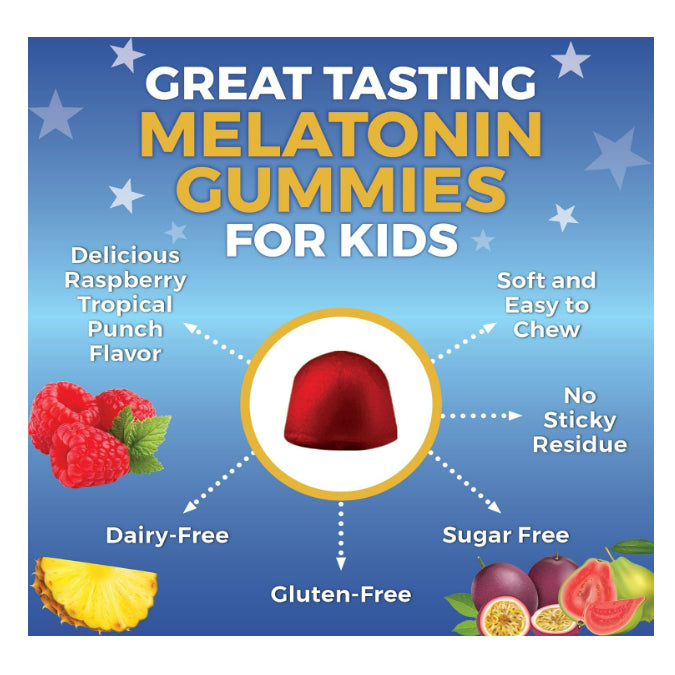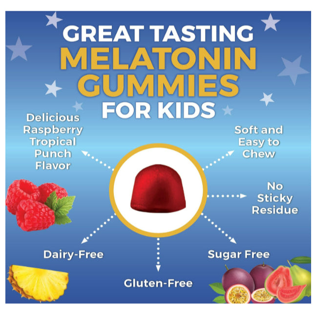 Supports Sleep: Melatonin helps regulate the sleep-wake cycle, making it easier for children to fall asleep and stay asleep.