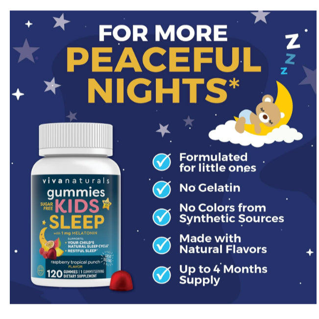 ✔120 SLEEP SUPPORT GUMMIES* - Our 120 chewable melatonin gummies for kids provide a 4-month supply. The recommended daily dose of 1 gummy (1 mg of Melatonin) should be taken at least 30 minutes before bedtime by children 3+, under adult supervision.