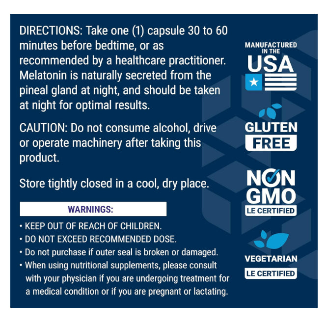 Take one capsule 30 to 60 minutes before bedtime. It is best to use melatonin supplements only when necessary to help with sleep problems, jet lag, or shift work.