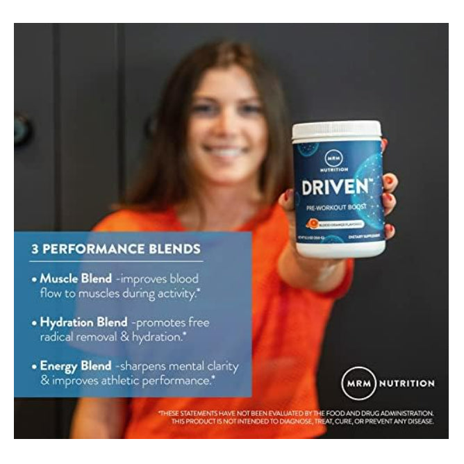 MRM Nutrition DRIVEN™ Pre-Workout Boost is ideal for athletes and fitness enthusiasts seeking natural energy, improved endurance, and better focus. This supplement offers a balanced, clean formula to support peak performance and post-workout recovery.