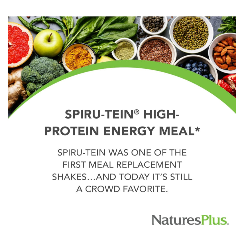 NaturesPlus Spiru-Tein Protein Powder Meal, Vanilla is a nutrient-dense protein supplement designed as a meal replacement or protein boost. It combines plant-based proteins with vitamins, minerals, and superfoods like spirulina. Here are its key health benefits: