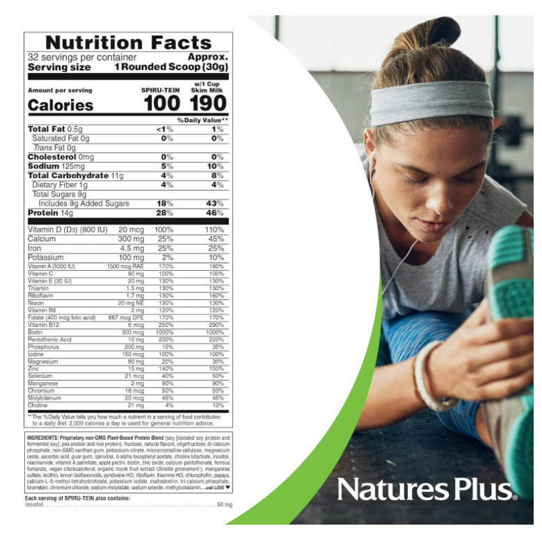 Spiru-Tein provides a blend of non-GMO plant-based proteins, including soy, rice, and pea protein, delivering all essential amino acids for muscle repair, growth, and overall health.