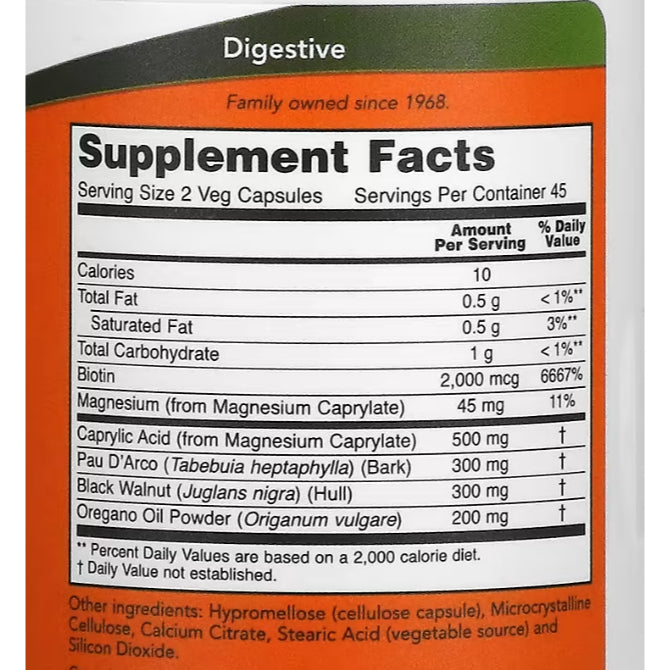 Black walnut hull is traditionally used to support intestinal health and fight parasitic and fungal infections. It can help maintain a healthy environment in the digestive tract and prevent the overgrowth of harmful microorganisms like Candida.