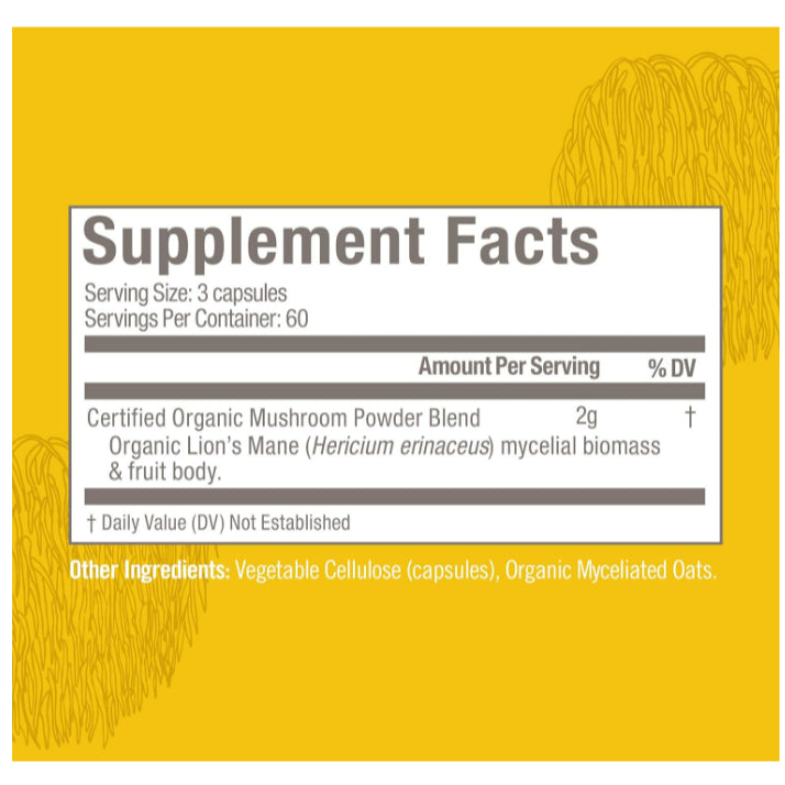 Om Mushrooms Lion's Mane Mushroom Superfood (2,000 mg, 180 VegCaps) provides a high dose of Lion's Mane mushroom (Hericium erinaceus), a popular medicinal mushroom known for its potential cognitive and neurological benefits. Each capsule contains 667 mg of Lion's Mane mushroom extract.