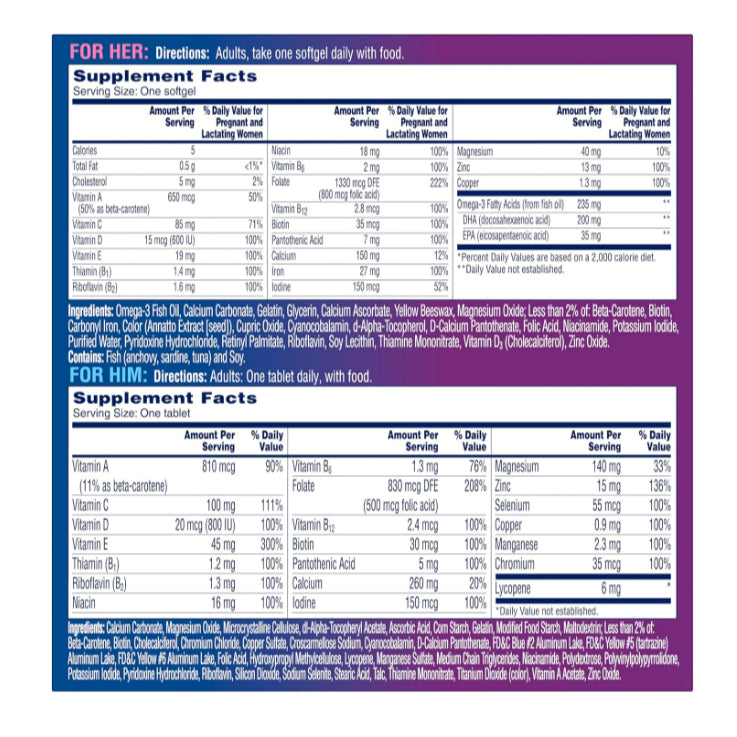 LowCost PH| One-A-Day, Pre-Pregnancy Couple's Pack, Women's & Women Prenatal Pre Conception Tablets