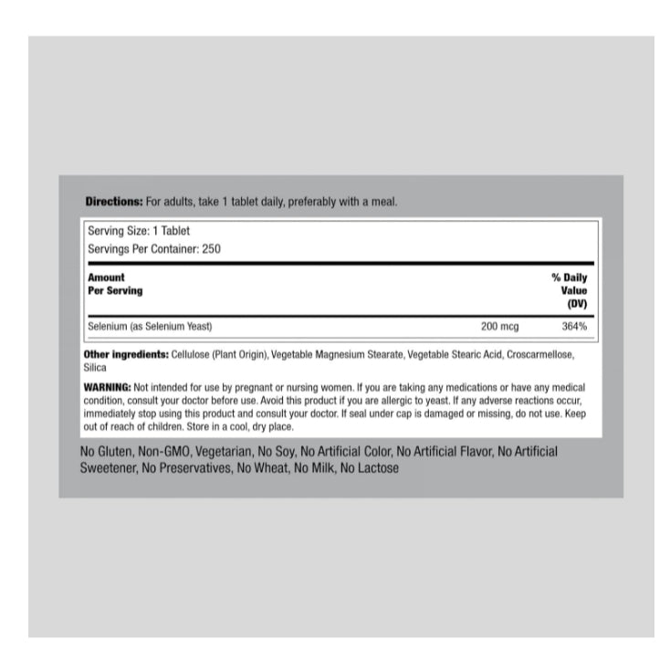 Piping Rock Selenium 200 mcg Supplement (250 Tablets) is a dietary supplement providing 200 mcg of selenium per tablet. Selenium is an essential trace mineral with antioxidant properties, playing a key role in various bodily functions. Here's an overview of its potential health benefits: