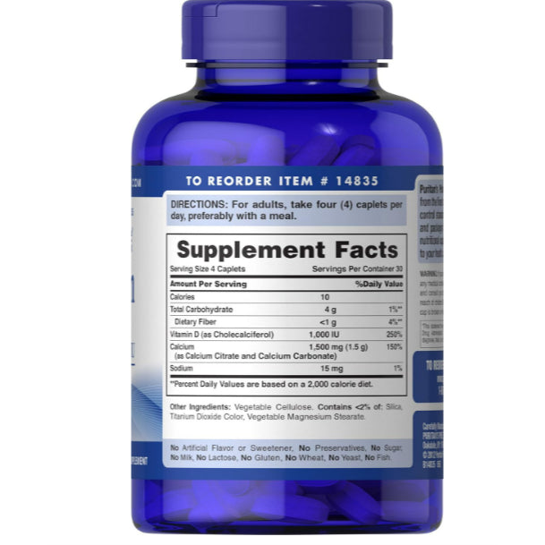 LowCost PH| Puritan's Pride Calcium 1500 mg with Vitamin D 1000 IU-120 Coated Caplets, 120 Caplets