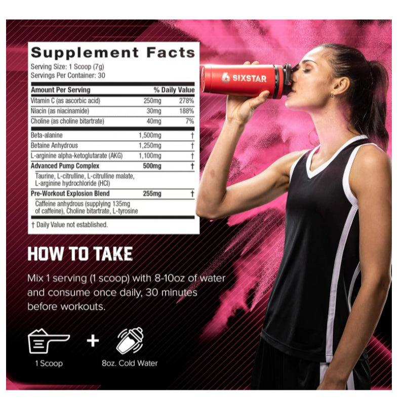 Six Star Pre-Workout Powder for Men & Women, Pink Lemonade (30 Servings) - Preworkout Explosion 2.0 Energy Powder Drink Mix with Beta-Alanine & Caffeine - Sports Nutrition Supplement Products