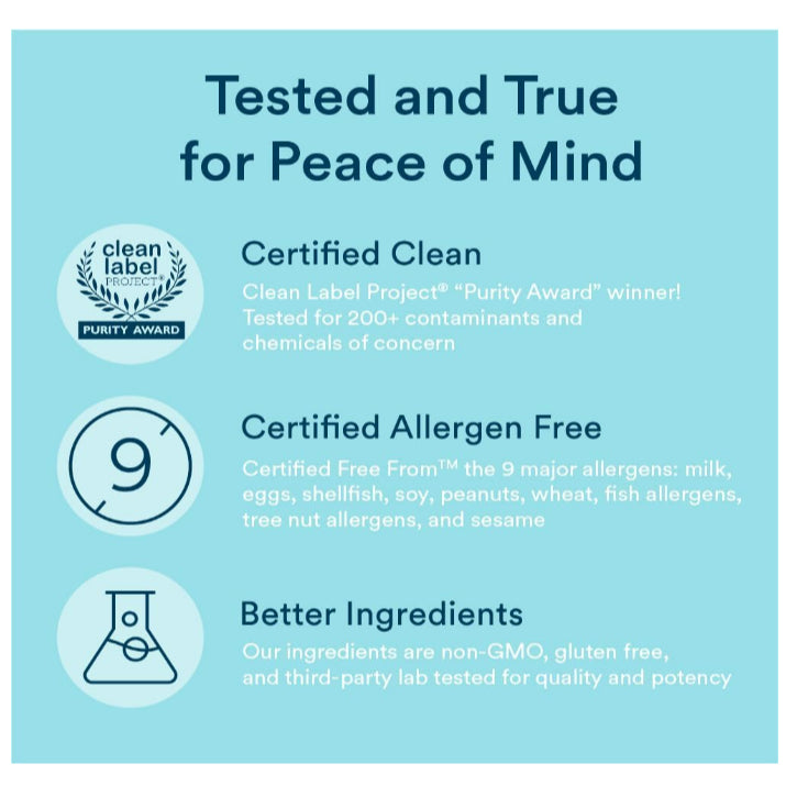 Vitamin C, vitamin D, and zinc are included to support a strong immune system, protecting the body from infections, illnesses, and reducing inflammation.