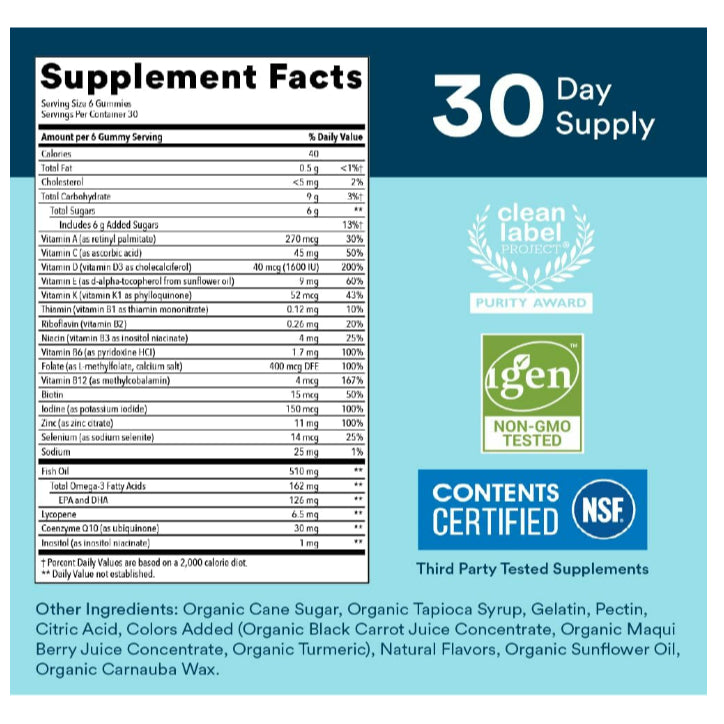 These gummies contain omega-3 fatty acids (EPA & DHA) from fish oil, which help reduce inflammation, lower blood pressure, and support healthy cholesterol levels, promoting overall cardiovascular health.