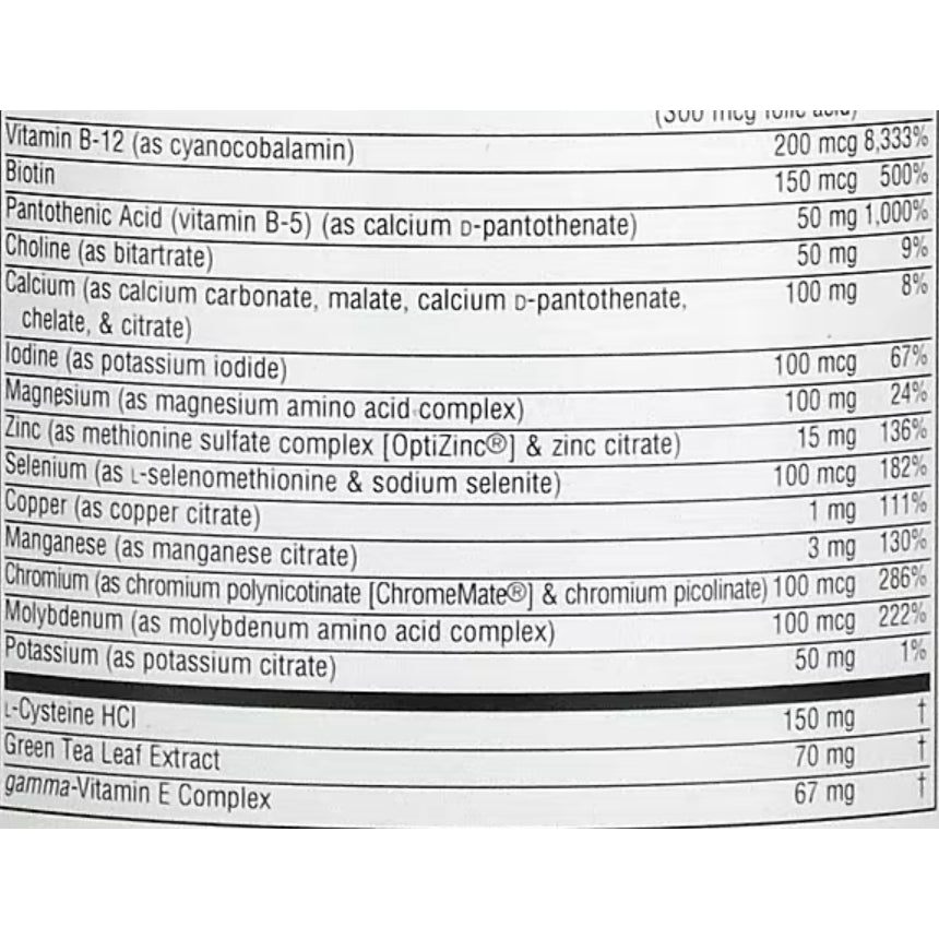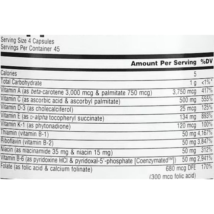Broad Spectrum of Nutrients: This multivitamin provides a wide range of essential vitamins and minerals necessary for overall health, including vitamins A, C, D, E, and several B vitamins, as well as key minerals like calcium, magnesium, and zinc.
