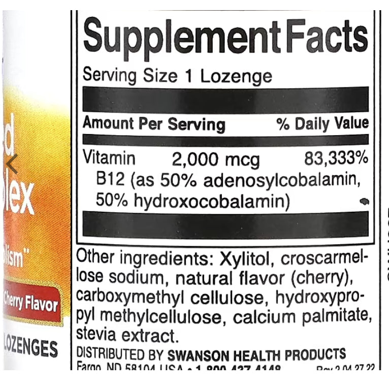 LowCost PH| Swanson, Activated B12 Complex, Natural Cherry, 60 counts