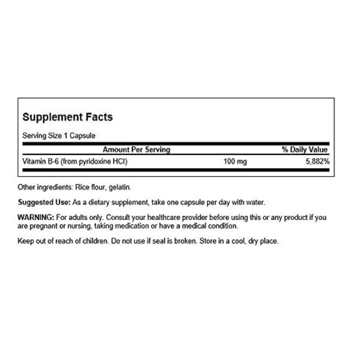 LowCost PH| Swanson, B6 Pyridoxine, 100 mg, 100 Capsules