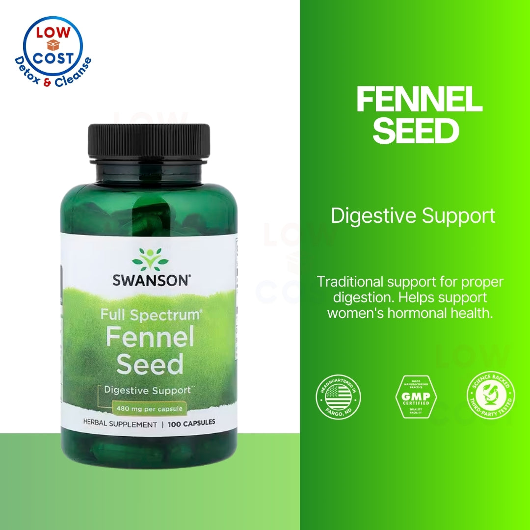 LowCost PH| Swanson, Full Spectrum Fennel Seed, 480 mg, 100 Capsules Constipatio & Bloating Relief
