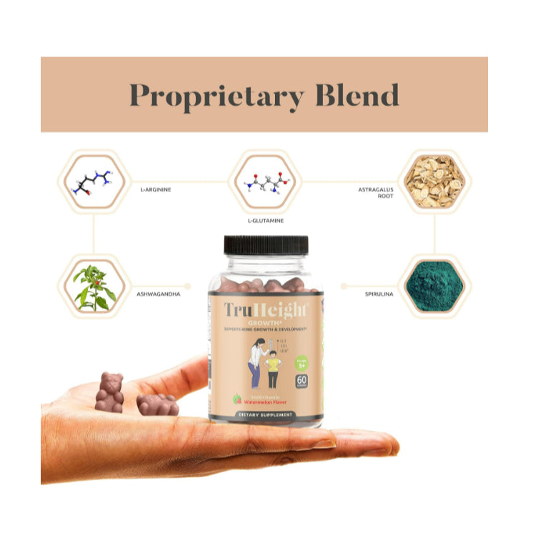 TRUHEIGHT GROWTH GUMMIES FOR KIDS & TEENS: TruHeight's growth gummies contain a responsibly sourced collection of vitamins and minerals, including Ashwagandha, Calcium, Vitamin D, and Vitamin K, culminating in natural growth and development.*