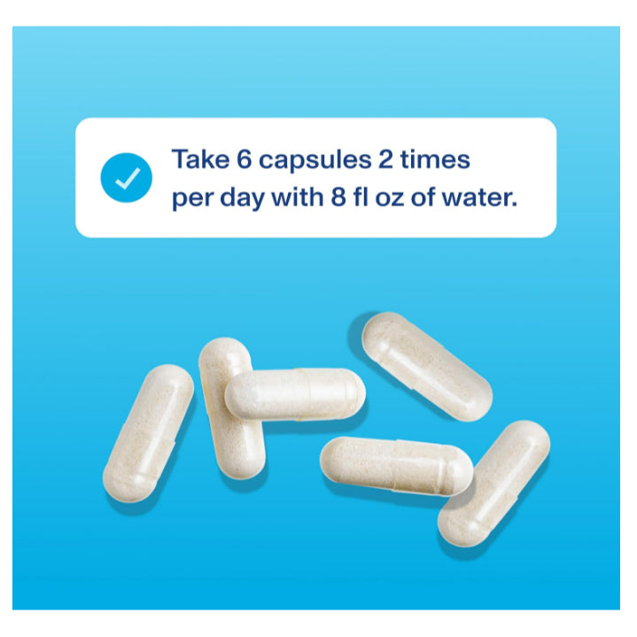 Take 6 capsules per day, with or without food, as part of your daily supplement routine.