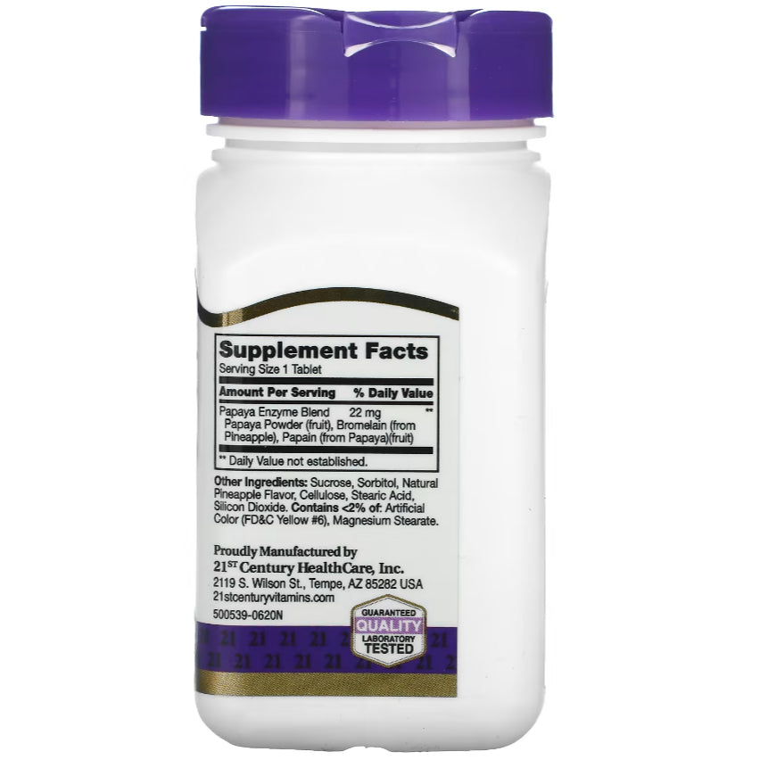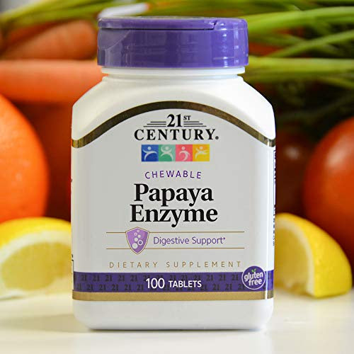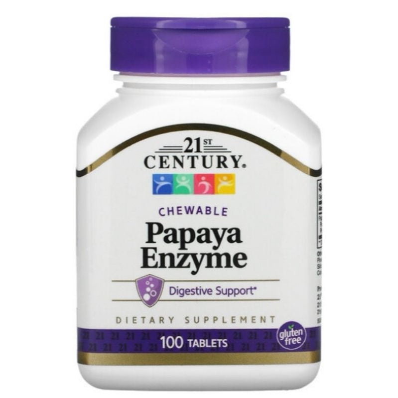 "21st Century American Health Papaya Enzyme" is a digestive enzyme supplement that typically contains enzymes derived from papaya, such as papain. Papaya enzymes are known for their digestive properties, and they may offer several benefits for digestive health. Here are some potential benefits and uses:
