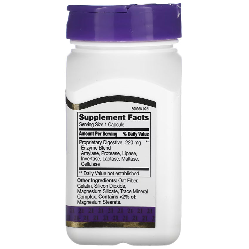 "21st Century Digestive Enzymes" is a supplement designed to support the digestive process by providing a blend of enzymes that aid in the breakdown of different types of nutrients. Digestive enzymes help break down carbohydrates, proteins, and fats into smaller, more easily absorbed components. Here are some potential benefits and uses of digestive enzyme supplements: