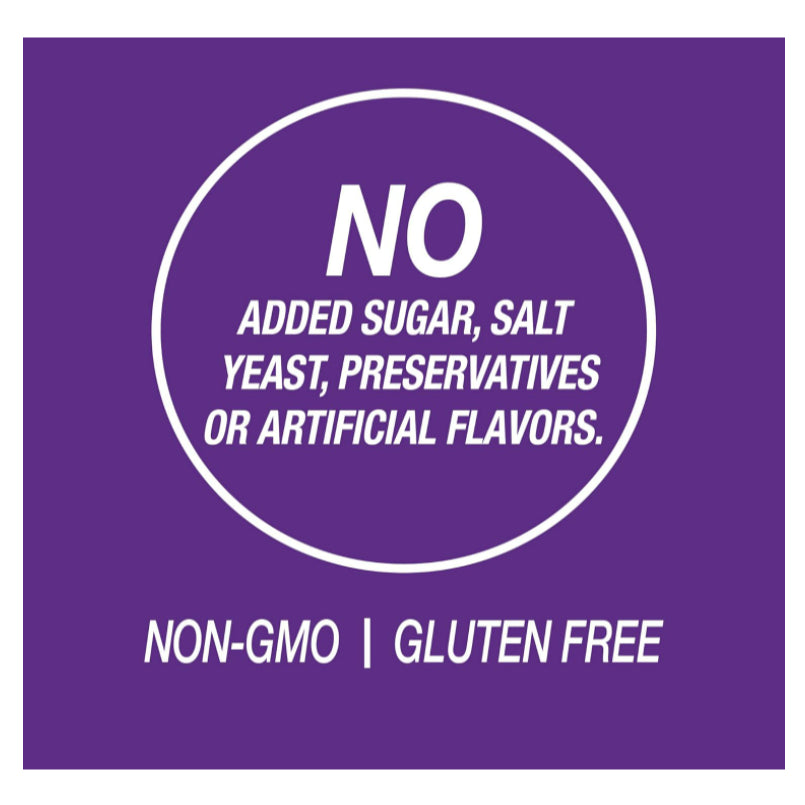 No added sugar, salt, yeast, preservatives, artificial flavors or colors.