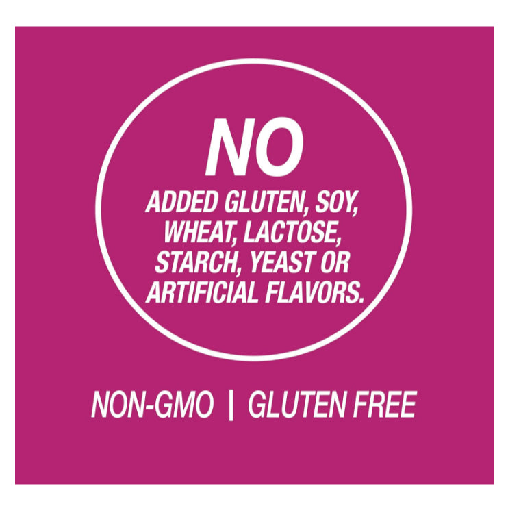 No gluten, soy, wheat, lactose, starch, yeast, or artificial flavors.