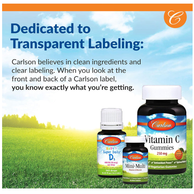 Overall Health and Well-being: Vitamin D3 is involved in numerous bodily functions beyond bone health and immune support. It plays roles in hormone regulation, muscle function, and cardiovascular health, among others. Ensuring adequate vitamin D intake through supplements like Carlson Kid's Vitamin D3 Gummies can contribute to overall health and well-being in children.